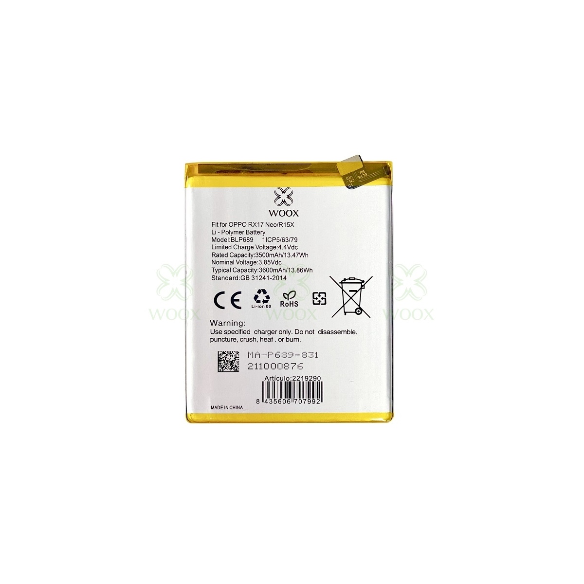 WOOX BATERIA BLP689 PARA OPPO RX17 NEO/R15X DE 3500MAH