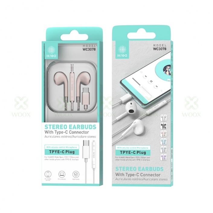 IKREA WC3078 AURICULARES ESTÉREO CON CONECTOR TYPE-C 1.2M TPE ROSA
