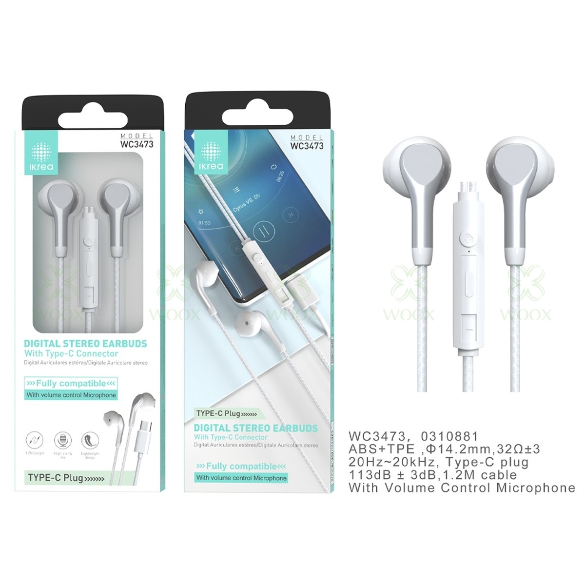 IKREA WC3473 AURICULARES DIGITAL ESTÉREO TYPE-C ALTA COMPATIBILIDAD BLANCO
