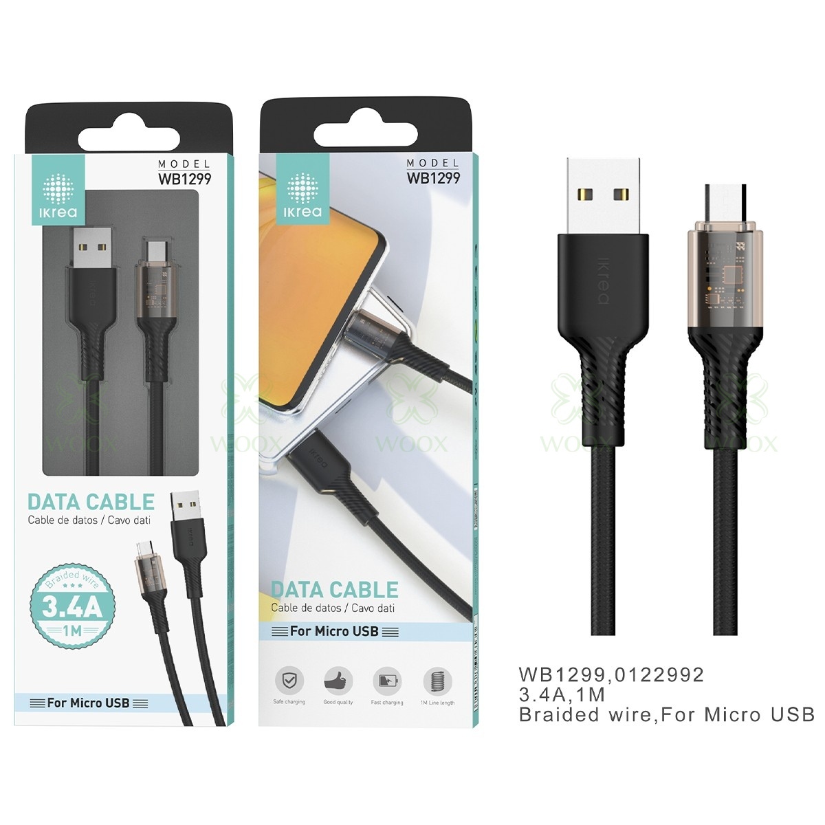 IKREA WB1299 CABLE TRENZADO MICRO USB 3.4A 1M NEGRO