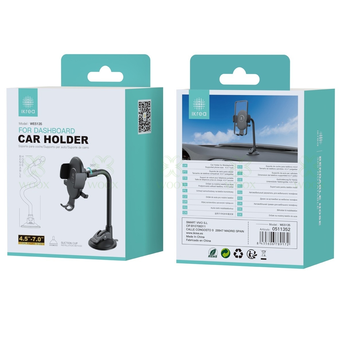 IKREA WE5135 SOPORTE UNIVERSAL BENDABLE DE VENTOSA CON GEL PARA SALPICADERO DE COCHE NEGRO