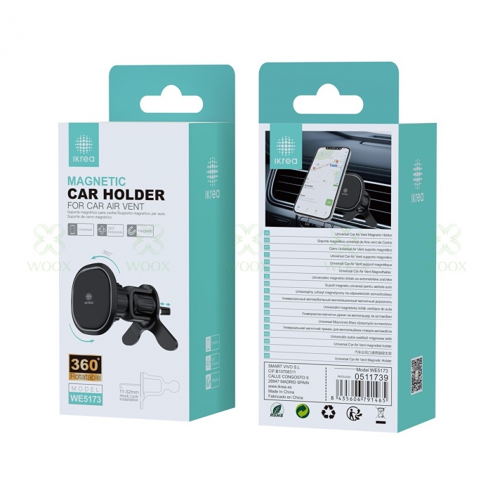 IKREA WE5173 SOPORTE UNIVERSAL MAGNÉTICO 360º CON HOOK LOCK PARA VENTILACIÓN DE AIRE DEL COCHE NEGRO