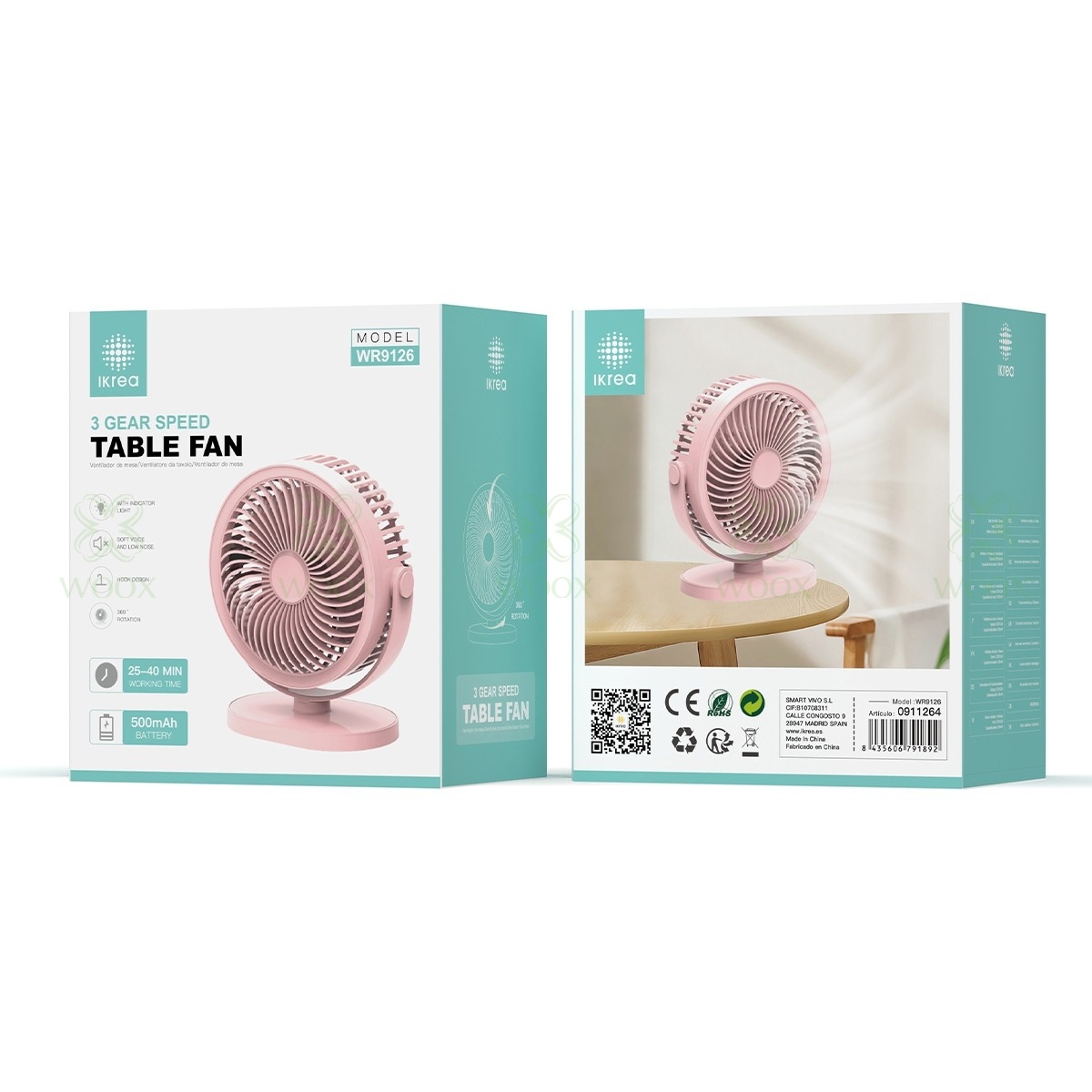 IKREA WR9126 VENTILADOR DE MESA 3 VELOCIDADES 500MAH 147.5*83*161.5MM ROSA