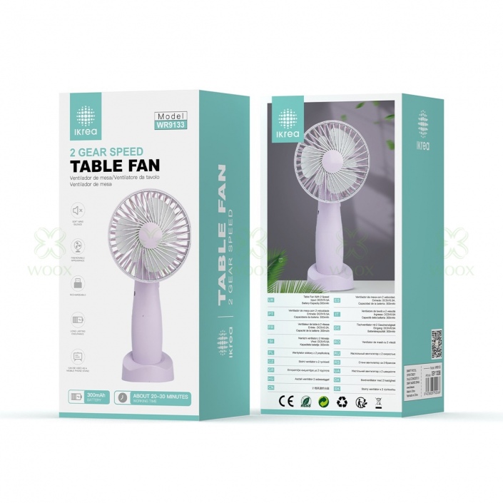 IKREA WR9133 VENTILADOR DE MESA 2 VELOCIDADES 300MAH 97*70*205MM LILA