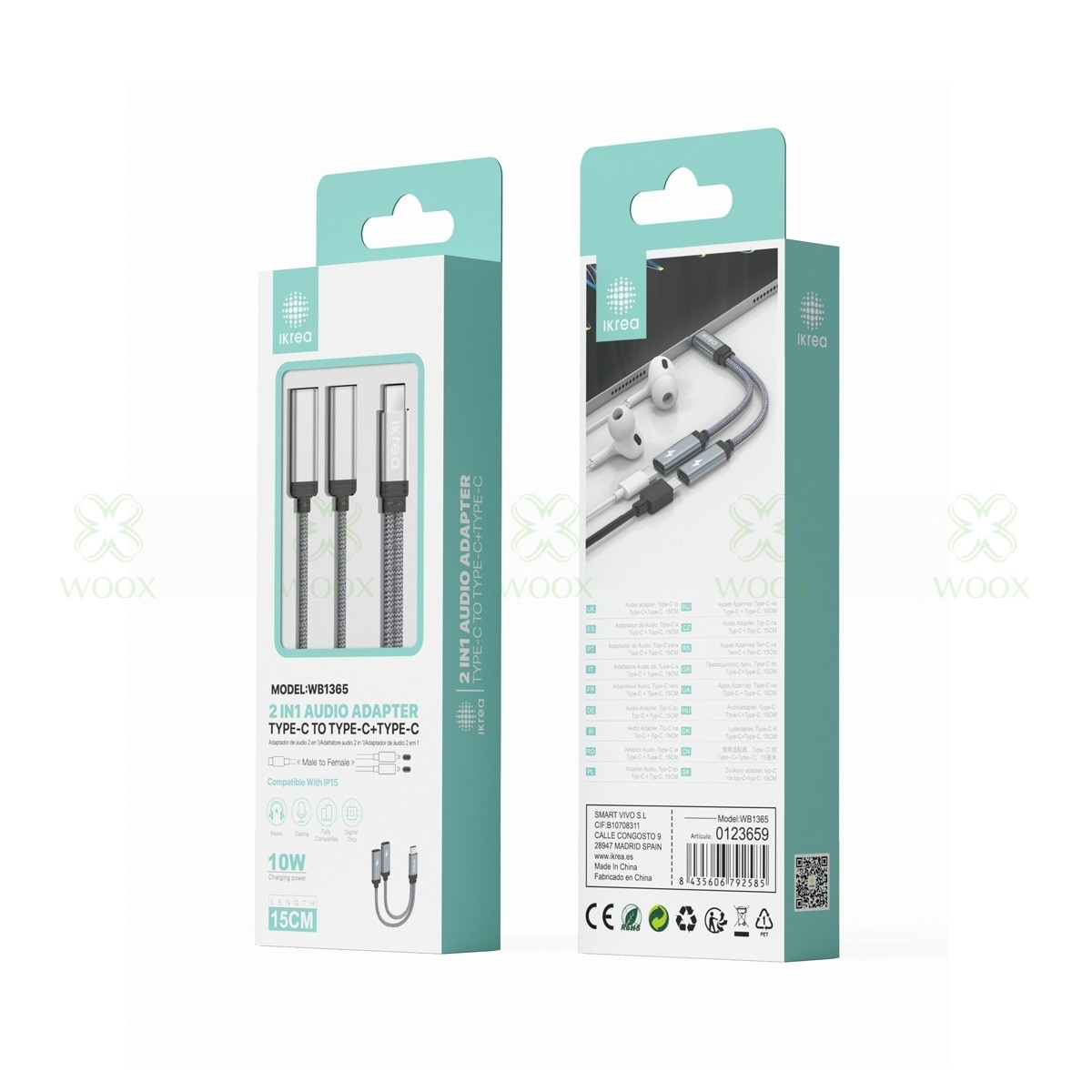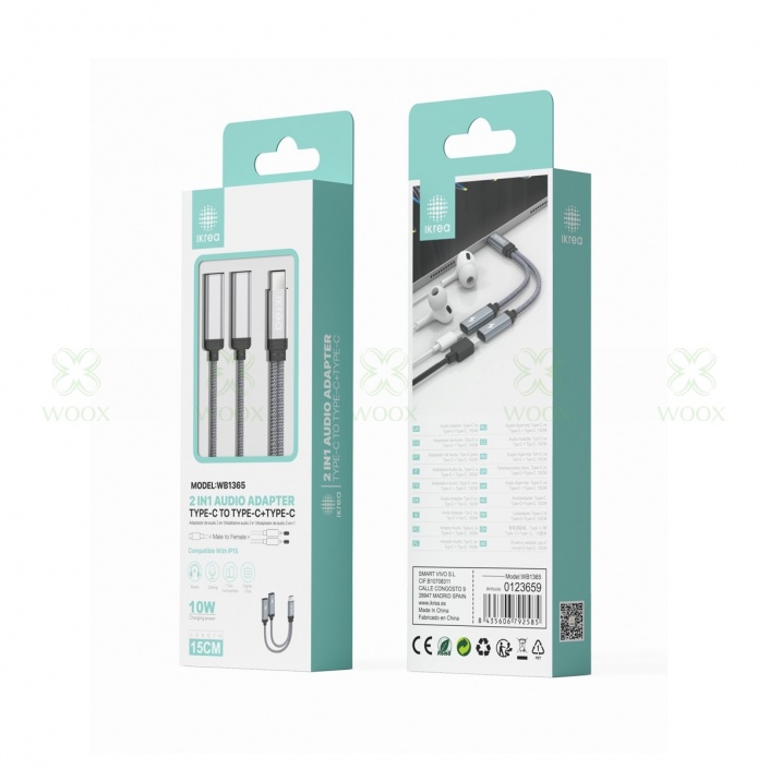 IKREA WB1365 ADAPTADOR DE AUDIO 2 EN 1 TYPE-C TO TYPE-C HEMBRA*2 15CM GRIS