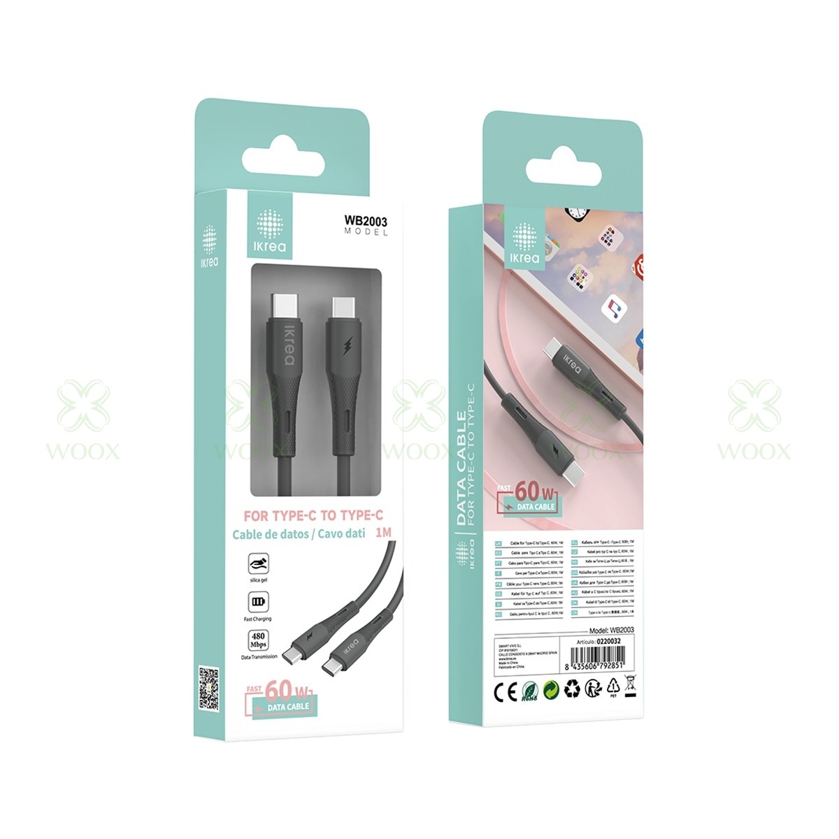 IKREA WB2003 CABLE DE DATOS TYPE-C TO TYPE-C CARGA RÁPIDA 60W 1M NEGRO