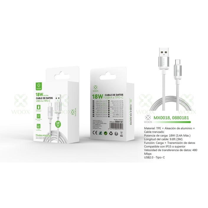 Cable de Datos MX0018 USB TO Type-C 30W 3m-Blanco