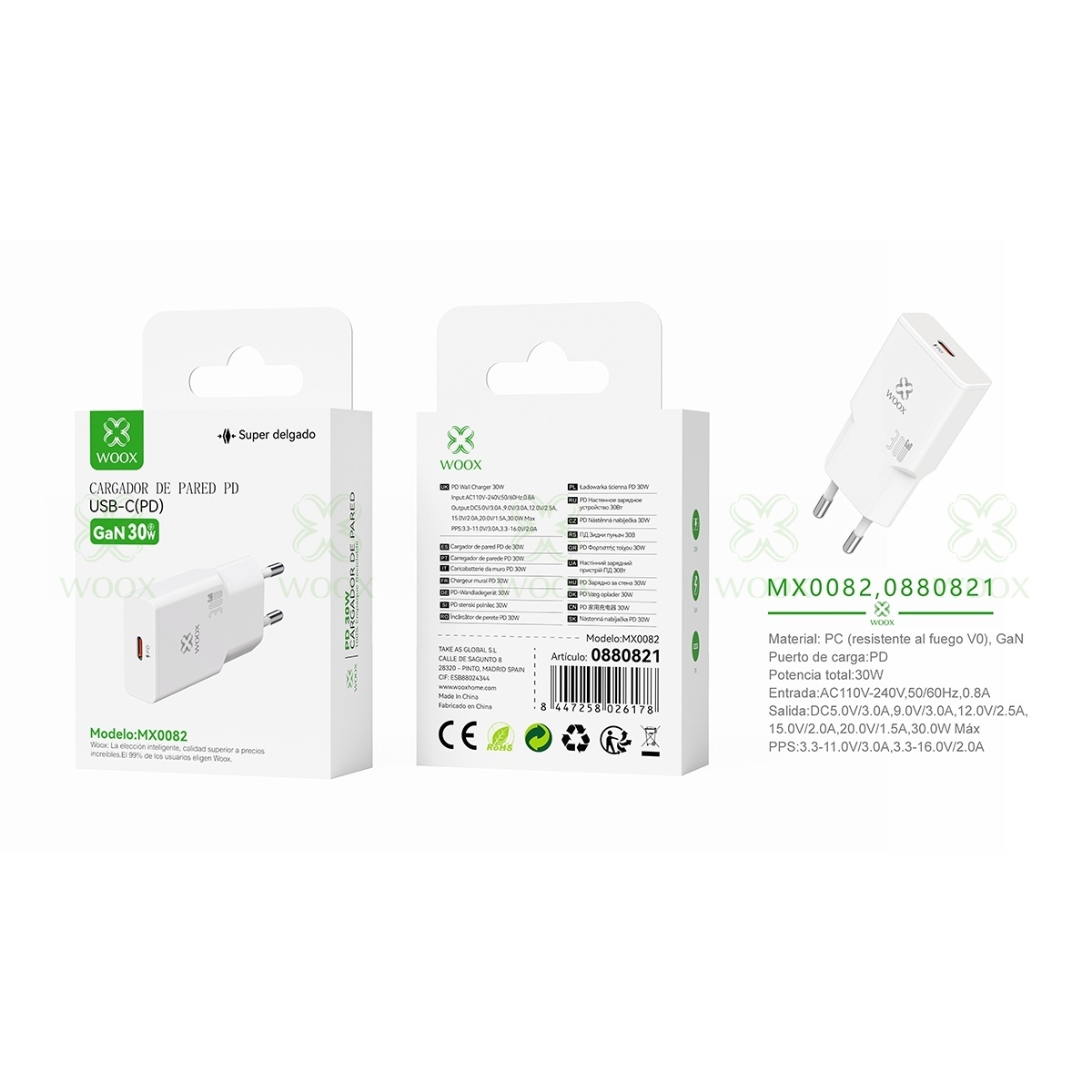 WOOX MX0082 ADAPTADOR USB C 30W BLANCO