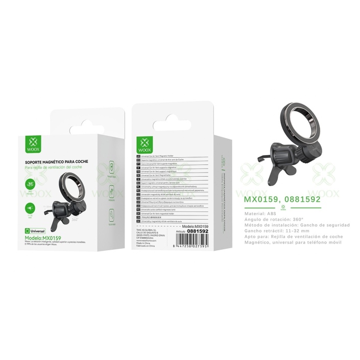 WOOX MX0159 SOPORTE UNIVERSAL MAGNETICO 360º PARA REJILLA DE VENTILACION DEL COCHE NEGRO