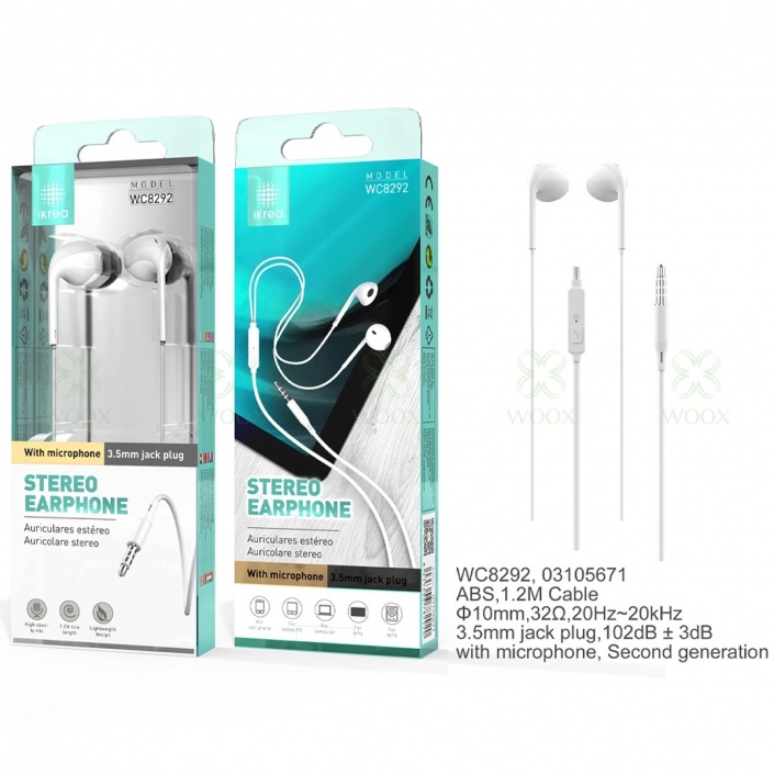 IKREA WC8292 AURICULARES STEREO CON MICRÓFONO BLANCO 3.5MM BLANCO 0