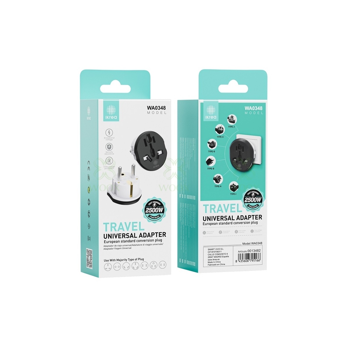 IKREA WA0348 ADAPTADOR DE VIAJE UNIVERSAL ESTANDAR EUROPEO 2500W MAX