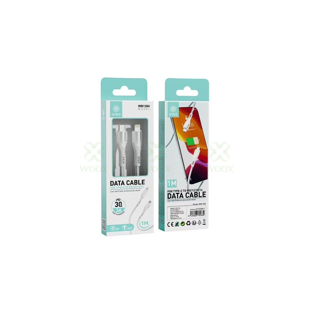 IKREA WB1394 CABLE TRENZADO DE CARGA RAPIDA PD TYPE-C TO LIGHTNING 30W 3A MAX 1M BLANCO