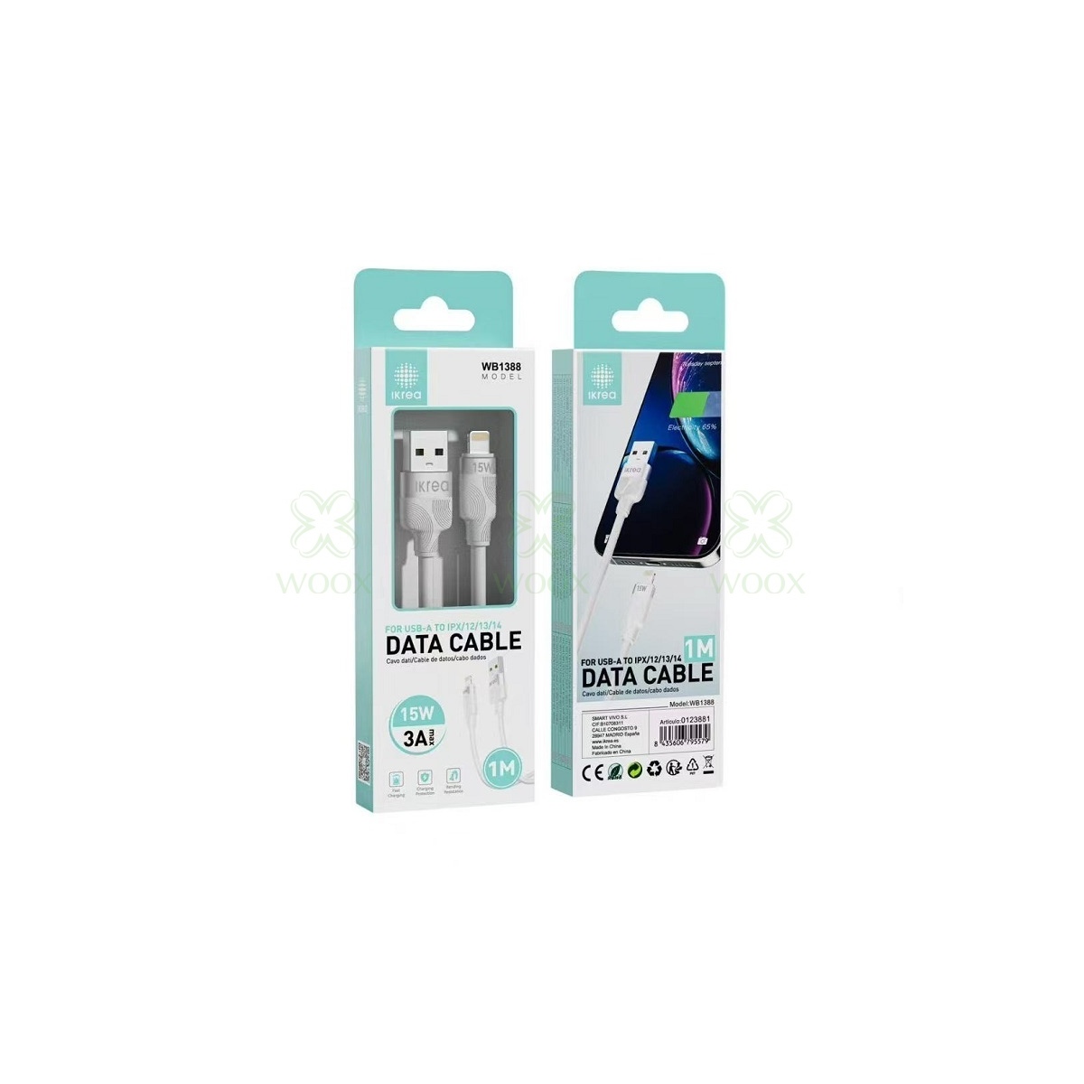 IKREA WB1388 CABLE TRENZADO DE CARGA RAPIDA LIGHTNING 15W 3A MAX 1M BLANCO