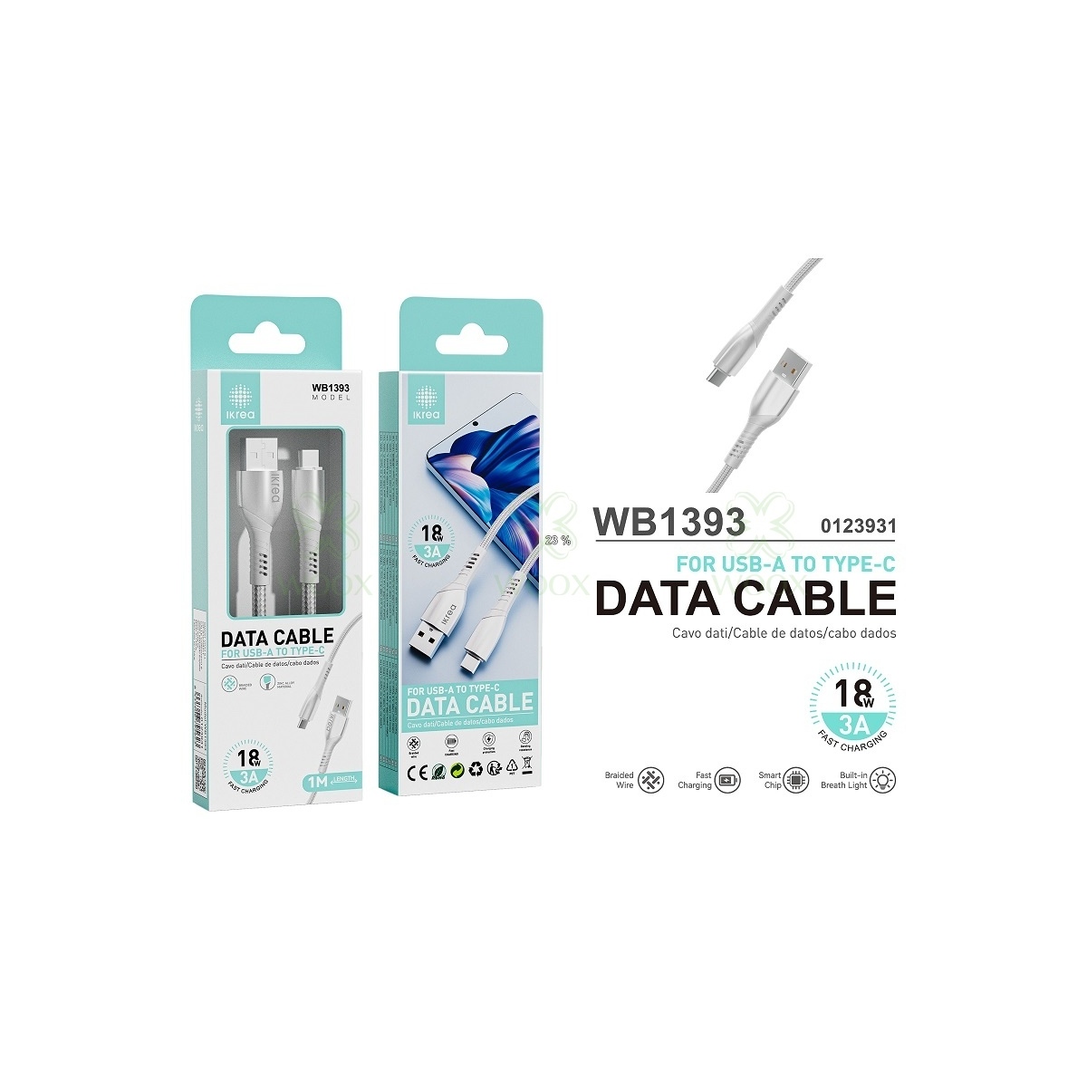 IKREA WB1393 CABLE TRENZADO DE CARGA RAPIDA TYPE-C 18W 3A MAX 1M BLANCO