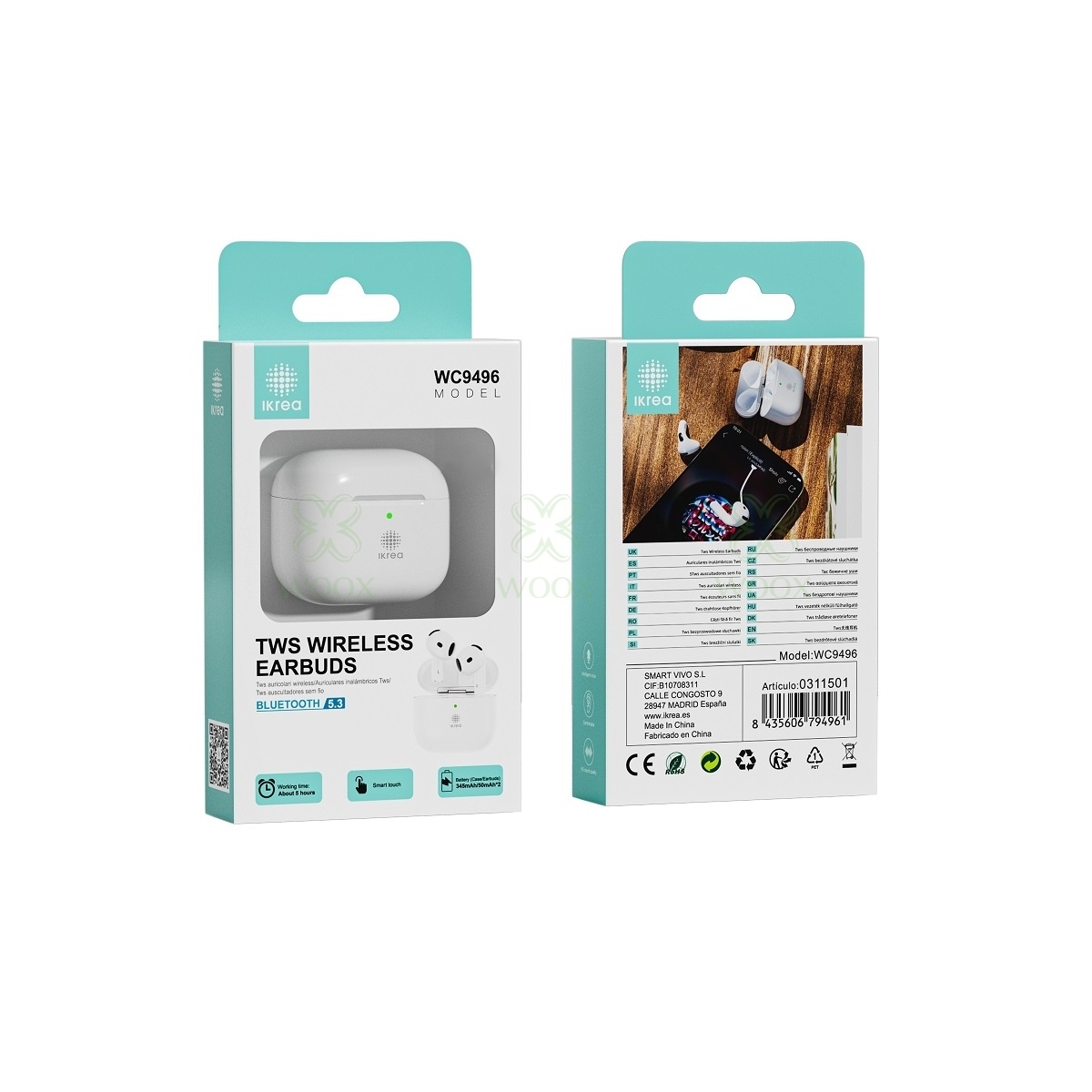 IKREA WC9496 AURICULARES INALAMBRICOS TWS BLUETOOTH 5,3 BLANCO