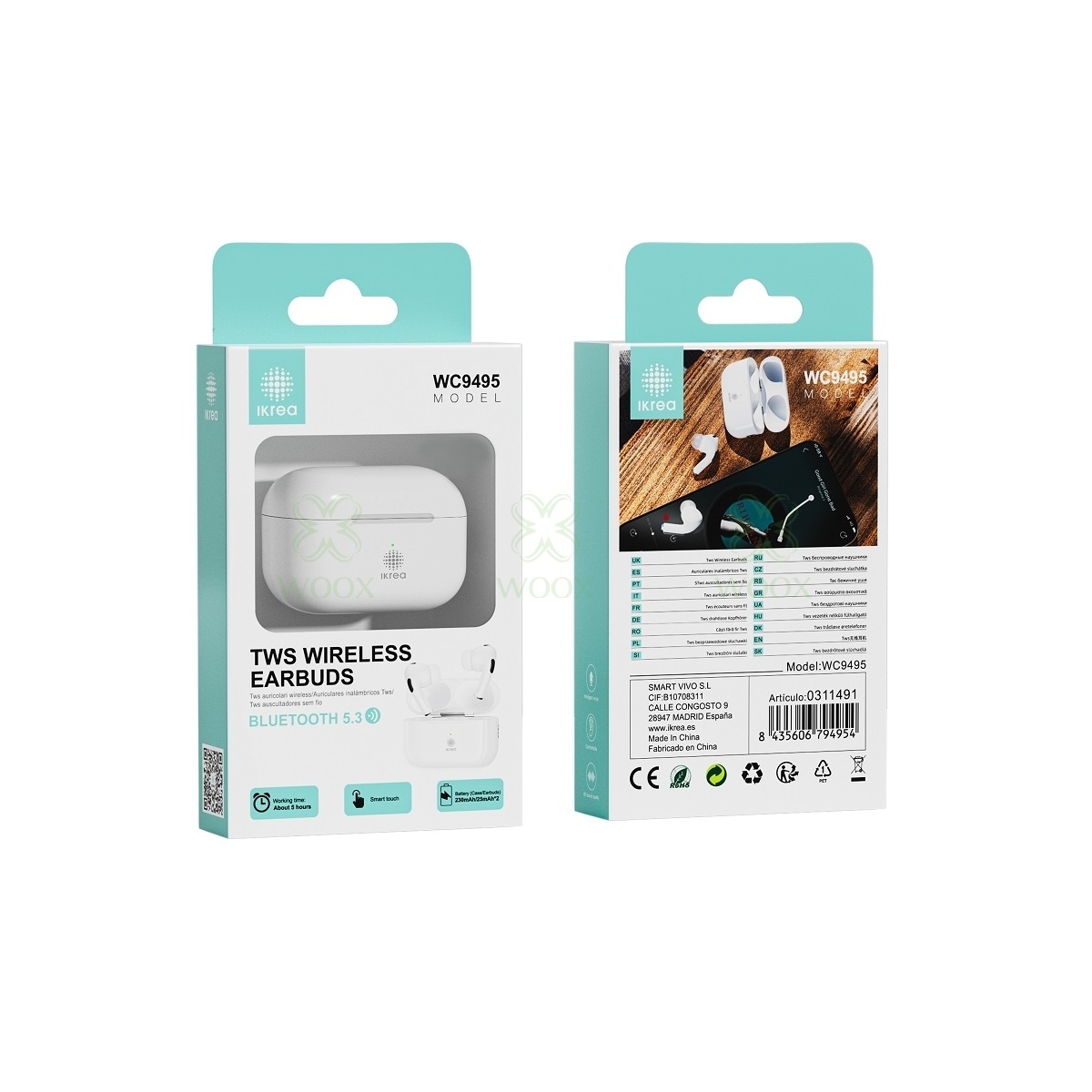 IKREA WC9495 AURICULARES INALAMBRICOS CON GAMA TWS BLUETOOTH 5,3 BLANCO(SIN CABLE)