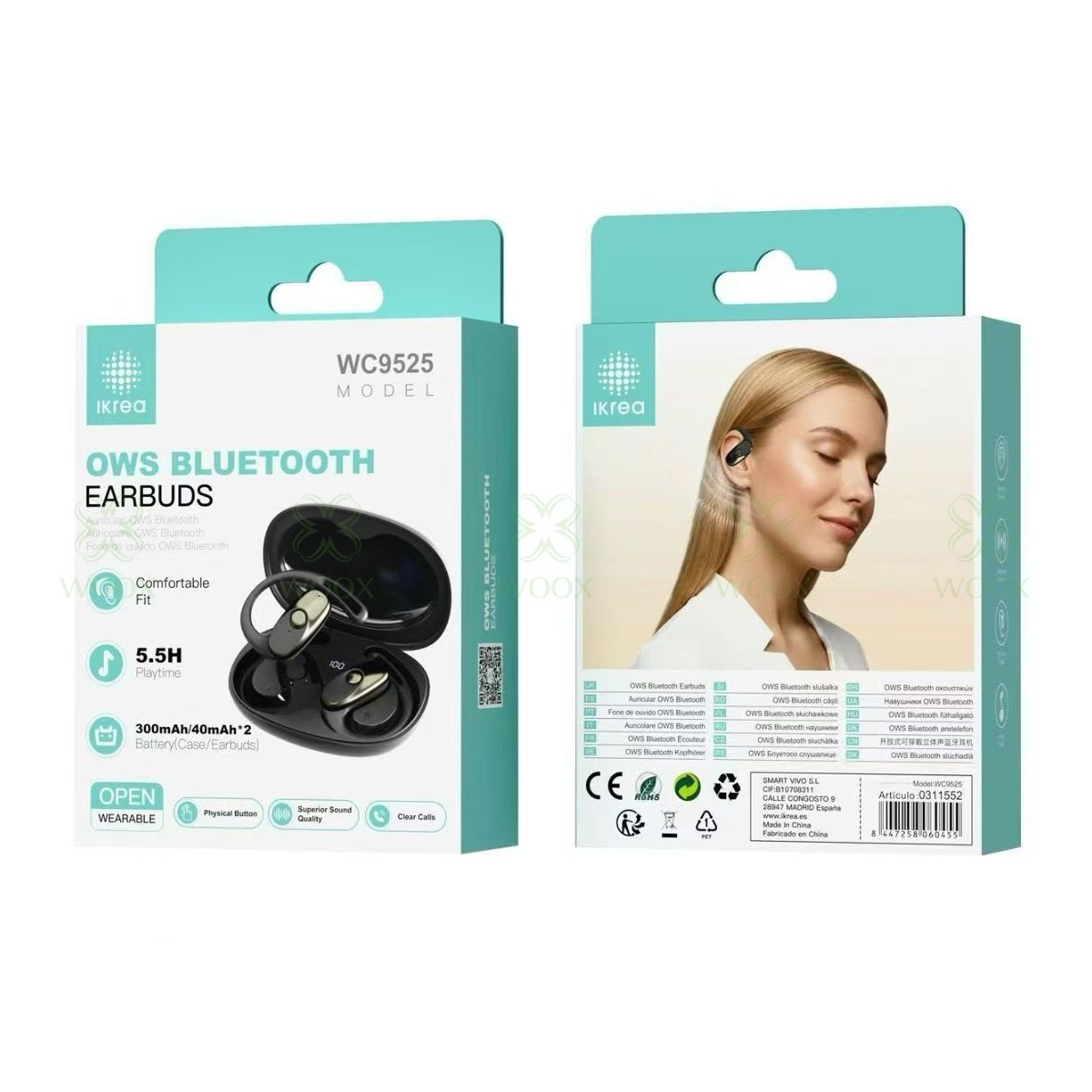 IKREA WC9525 AURICULARES INALAMBRICOS CON GANCHO TWS BLUETOOTH 5.5H 300MAH/40MHA NEGRO