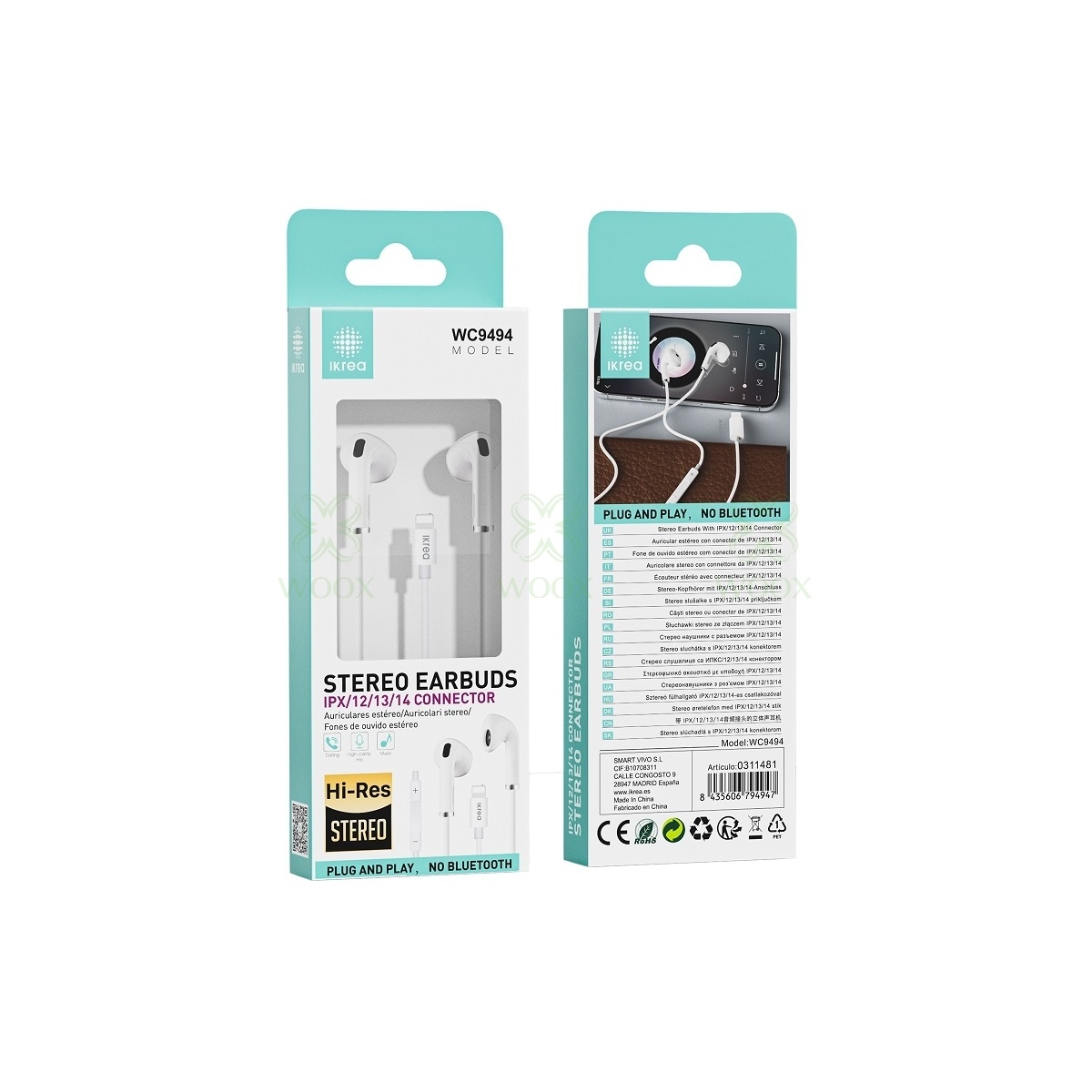 IKREA WC9494 AURICULARES HI-RES STEREO CONECTOR LIGHTNING BLANCO