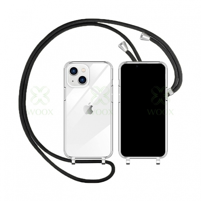 FUNDA TRANSPARENTE CON CUERDA NEGRO IPHONE 12 PRO MAX