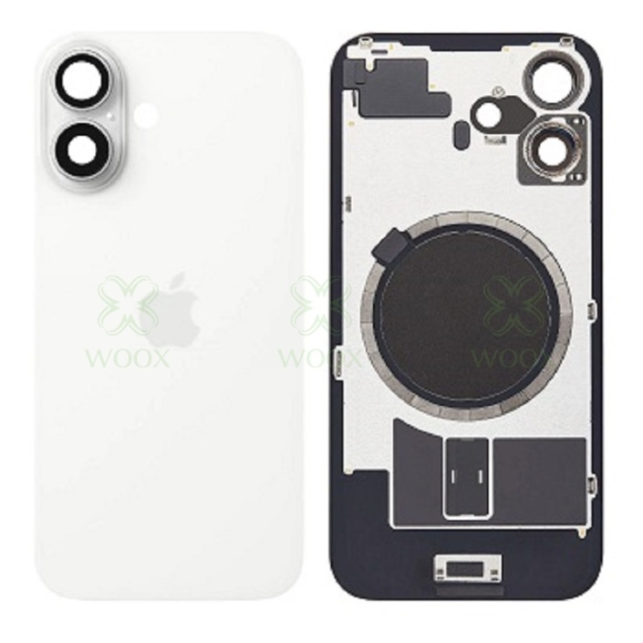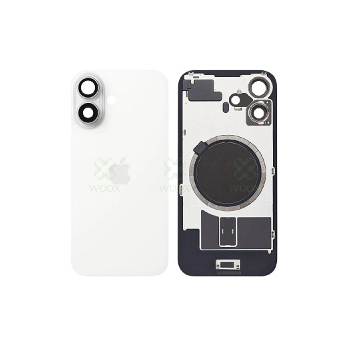 TAPA TRASERA CON SOPORTE METAL Y LENTE PARA IPHONE 16 BLANCO