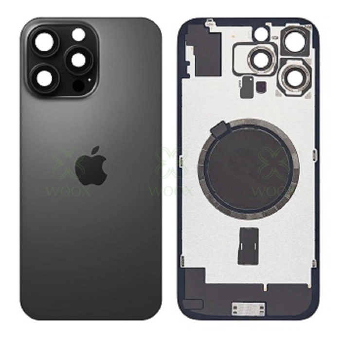 TAPA TRASERA CON SOPORTE METAL Y LENTE PARA IPHONE 16 PRO MAX NEGRO