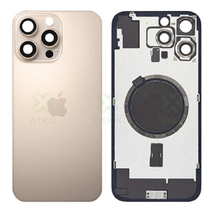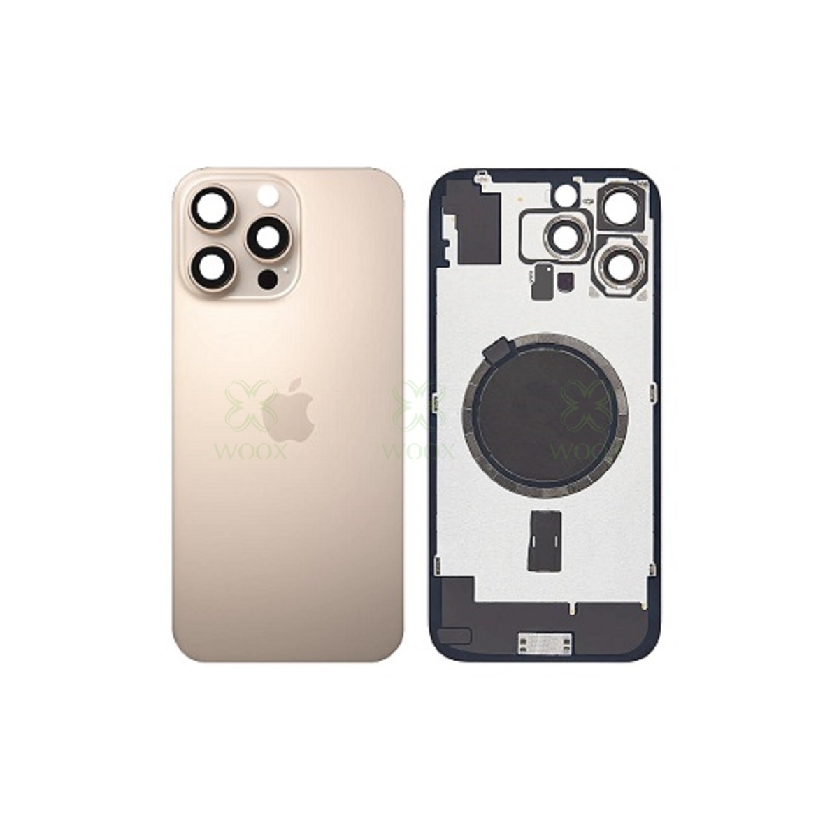 TAPA TRASERA CON SOPORTE METAL Y LENTE PARA IPHONE 16 PRO MAX DORADO