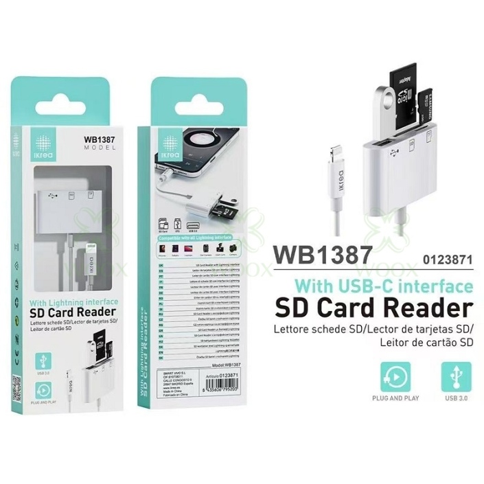 IKREA WB1387 LECTOR DE TARJETAS SD INTERFAZ LIGHTNING BLANCO