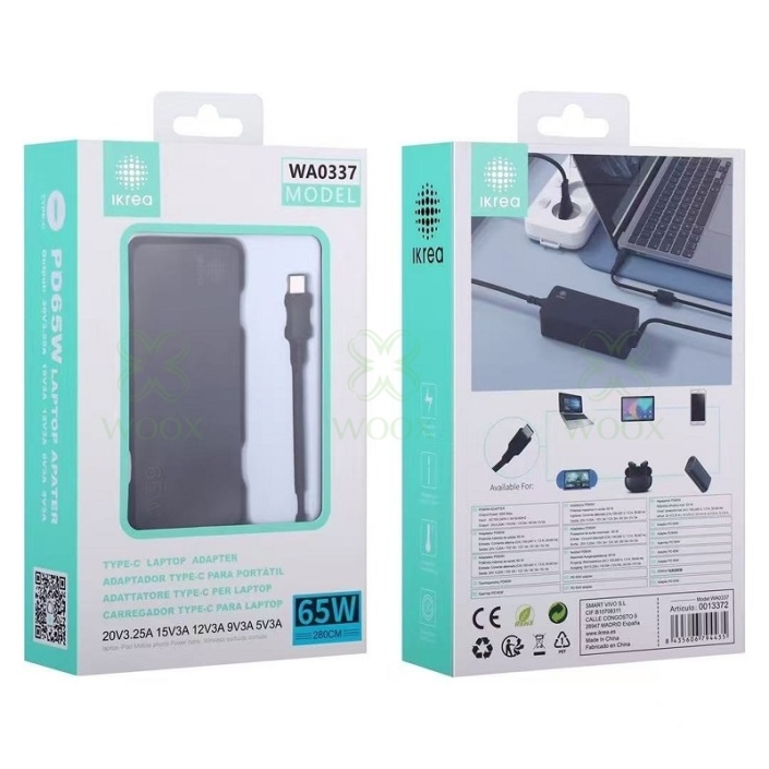 IKREA WA0337 CARGADOR DE PORTATIL TYPE-C 65W 280CM NEGRO