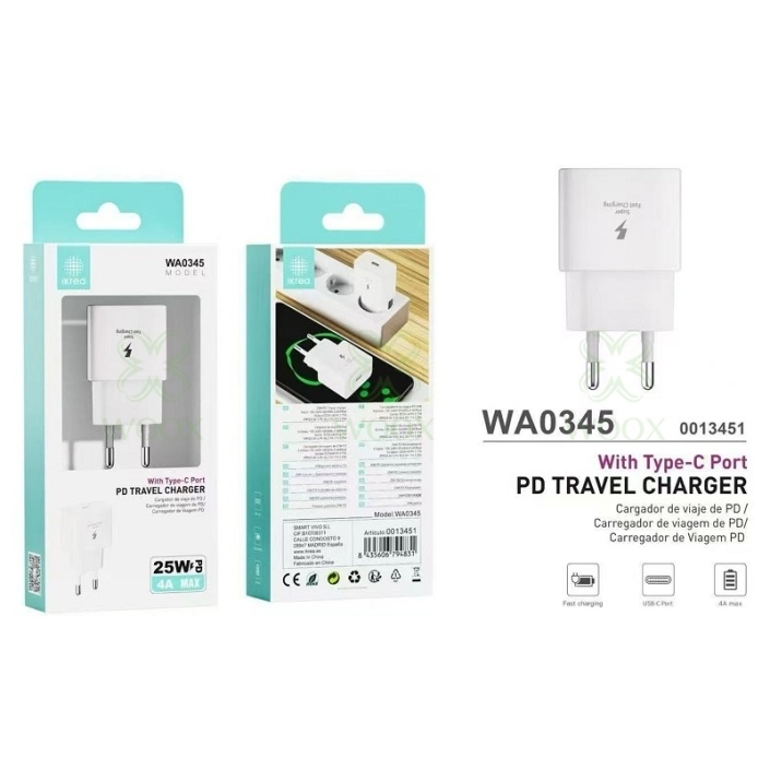IKREA WA0345 CARGADOR PD CON PUERTO TYPE-C 25W 4A MAX BLANCO